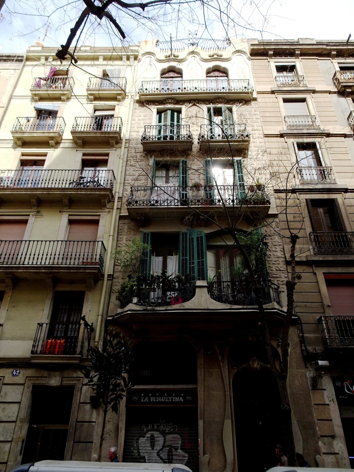 "Edificio entre medianeras de 1906, de marcada influencia modernista. La fachada se organiza verticalmente según los dos ejes que marcan las aberturas. La huella modernista se hace patente en la puerta, con moldeo de líneas sinuosas y ornamentación floral, y especialmente en el piso superior, con coronamiento también ondulado y paneles decorados. Las aberturas de los pisos inferiores tienen los dinteles esculpidas."