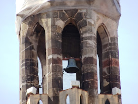 Originariamente, la Iglesia de Tapioles contaba con un campanario de más de 50 metros de altura, que acababa en un remate puntiagudo coronado por una bola y una cruz. Ante la previsión de los primeros bombardeos sobre la ciudad, se decidió desmantelar la parte más alta del campanario.