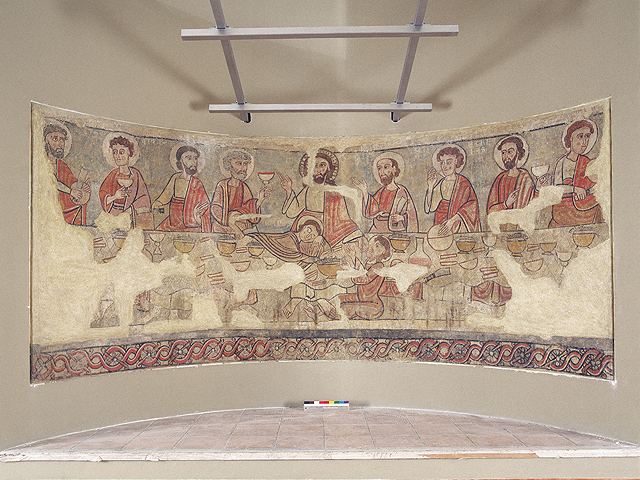"Del mismo conjunto y autoría se conservan otros dos fragmentos de pintura mural con el martirio y la decapitación de la santa, en la Fundación Abbeg de Riggisberg (Suiza), y la Santa Cena del registro inferior, en el Museu Episcopal de Vic. Procede de la antigua capilla de Santa Catalina de la catedral de La Seu d'Urgell (Alt Urgell), que se abre al lado del ábside principal, en el brazo meridional del crucero.