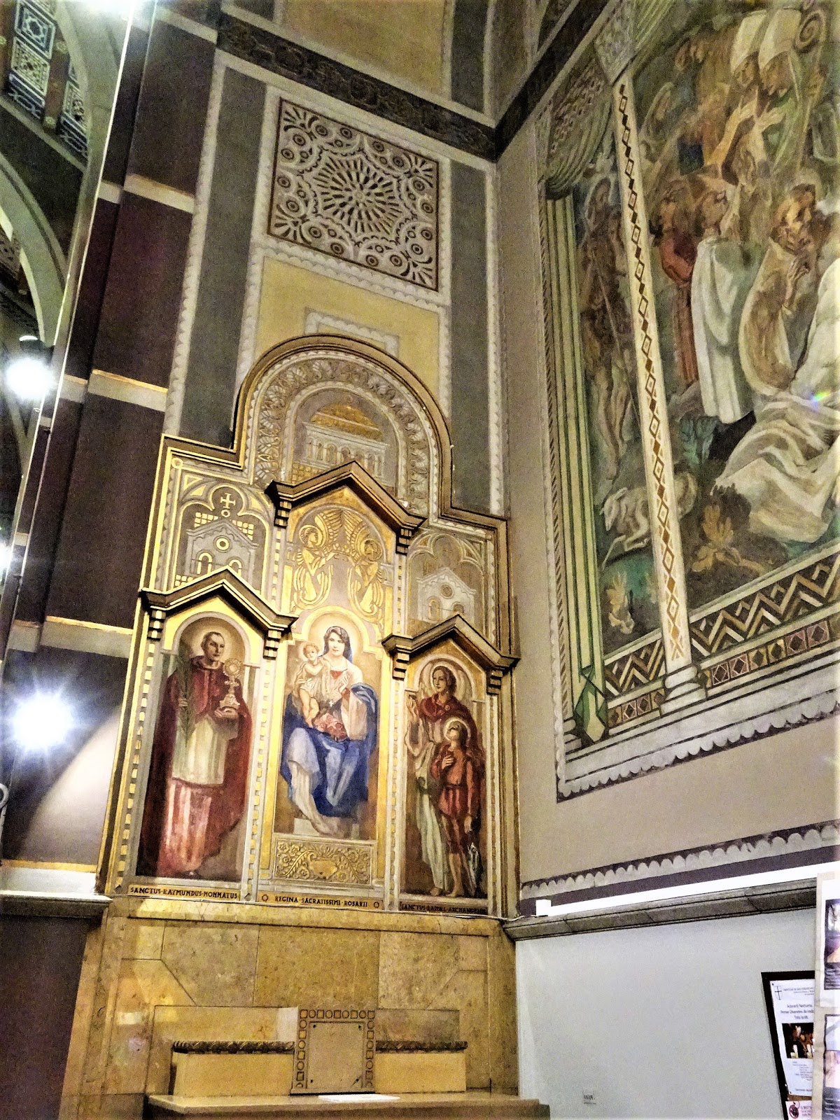El interior de la nave está decorado con pinturas de Francesc Labarta i Planas (Barcelona, 1883-1963), de los años cuarenta."